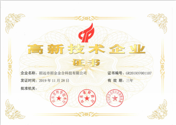 日前,从招金金合传来喜讯:企业凭借较高的研发管理水平、强大的科技成果转化能力以及在高新技术领域内的所取得的一系列成就,顺利通过国家级高新技术企业复审认定。
