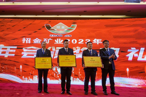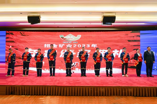 星光不问赶路人,时光不负有心人。2022年,全公司各项工作和条线以“五优竞赛”为引领,大力营造“比学赶帮超”的干事创业氛围。涌现出了一批先进典型,他们凝聚着全公司干部职工勤勉敬业、团结拼搏的良好风貌,传承着招金矿业上下一心、攻坚克难、砥砺奋进的优秀企业家风。会上,公司党委副书记、副总裁、工会主席王立刚同志宣读了《千亿球友会(中国)官方网站关于表彰二〇二二年度先进集体和先进个人的决定》,公司高管现场为“五优竞赛单项奖、团体奖、十大先锋”、“星级文明企业”、“攻坚突围精英团队”、“十大技能之星”等先进集体、优秀个人颁发了奖牌及荣誉证书。