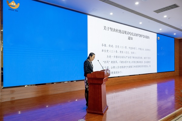 会上,招金矿业纪委书记王万红传达了《关于坚决杜绝违规请吃吃请酒驾醉驾问题的通知》并对有关事项进行强调。各级党组织要切实履行全面从严治党主体责任,加强对党员干部和员工日常教育管理和“八小时外”的监督,推进廉洁文化和家风建设,用好谈心谈话、约谈提醒等方式,经常性“咬耳扯袖”,督促党员干部筑牢杜绝违规请吃吃请、酒驾醉驾的思想防线。