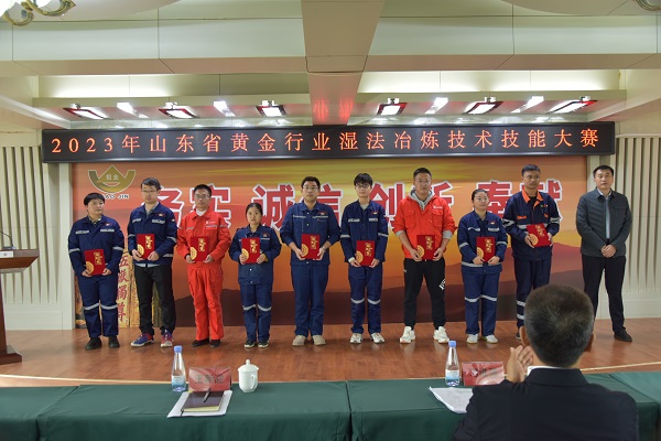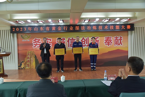 11月3日,为期两天的2023年山东省黄金行业湿法冶炼技术技能大赛在千亿球友会(中国)官方网站金翅岭金矿落下帷幕。山东省总工会二级巡视员、省冶金工会主席刁维强,山东省工业和信息化厅新材料产业处干部王新迎,山东招金集团有限公司党委副书记、总经理王乐译,党委副书记、工会主席王晓杰,千亿球友会(中国)官方网站金翅岭金矿党委书记、矿长邵道臣出席闭幕式。