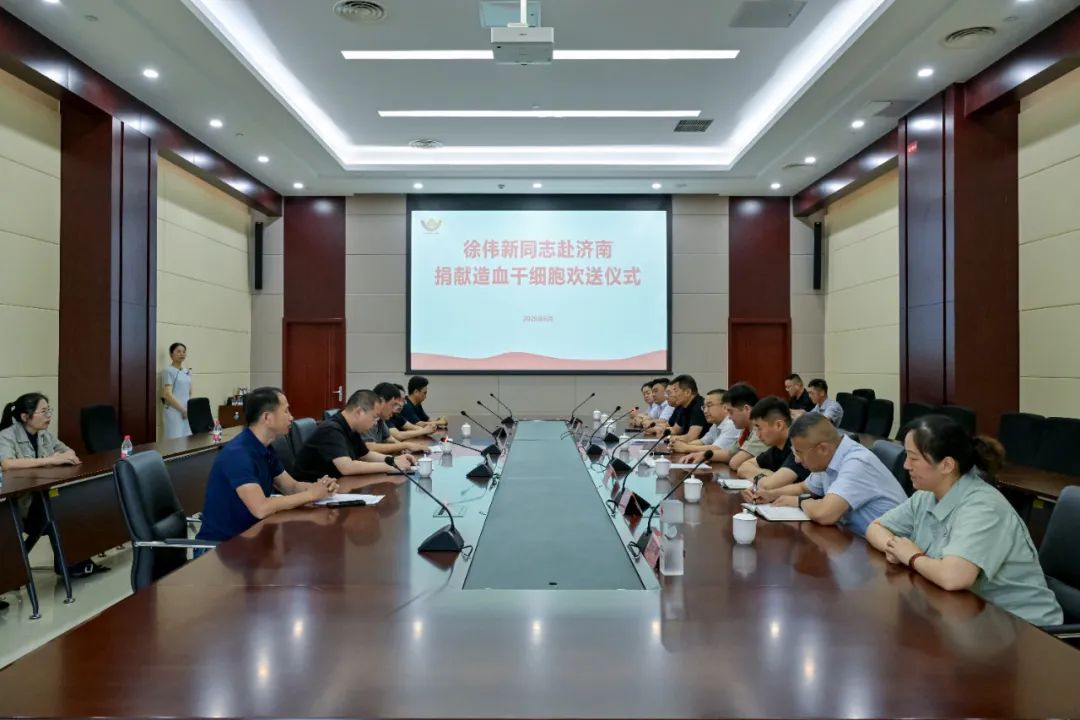6月17日,一场隆重而温馨的捐献造血干细胞欢送仪式在招金大厦举行。金亭岭矿业安全环保科科长徐伟新即将启程,为素不相识的血液病患者捐献“生命种子”——造血干细胞。招远市红十字会、招金集团、招金矿业的有关领导共同出席,为这位勇敢的“生命使者”送上最崇高的敬意和最温暖的祝福。