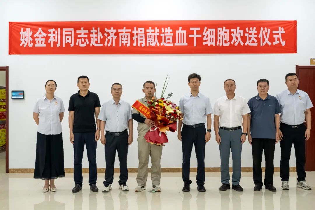 7月11日上午,招远市第10位、招金集团第6例、招金矿业第4例造血干细胞捐献志愿者姚金利同志赴济南捐献欢送仪式在招金大厦隆重举行。这位来自夏甸金矿的“00后”,用实际行动诠释了人间大爱、生命至上的精神,用他的纯粹与高尚续写了招金人大爱无疆的责任与担当。