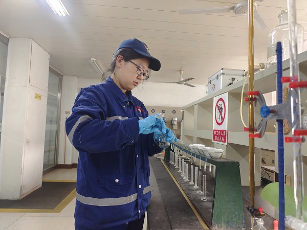 工作上,她勤勤恳恳、任劳任怨,每天做着重复而枯燥的试验工作,看似平淡无奇,实则至关重要。虽然没有直接参与车间生产,但她明白自己肩上的担子和责任,试验工作决定着原料是否符合要求、决定了企业的利润也关乎企业职工的利益,她是车间的眼睛,在各车间、各环节之间起着桥梁和纽带的作用。