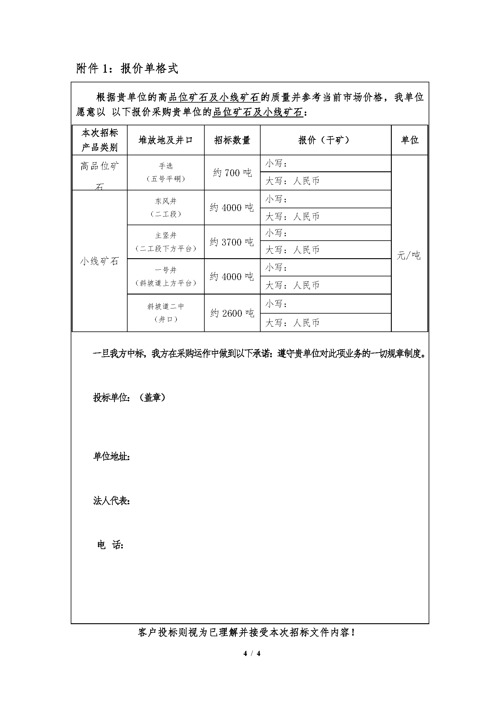 注:本次招标产品数量为预估数,投标按干矿报价,中标结算湿矿以实际过磅数为准,水分按2%扣除计算干矿。如中标人需要,我公司开具甘肃省增值税普通发票(黄金)。